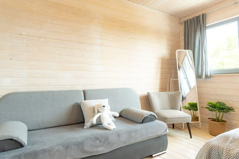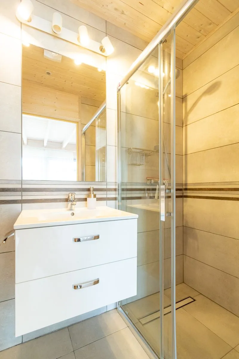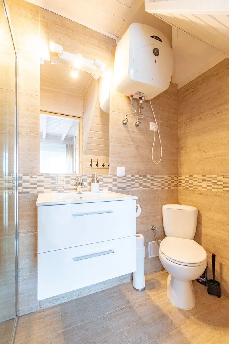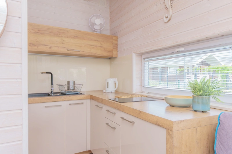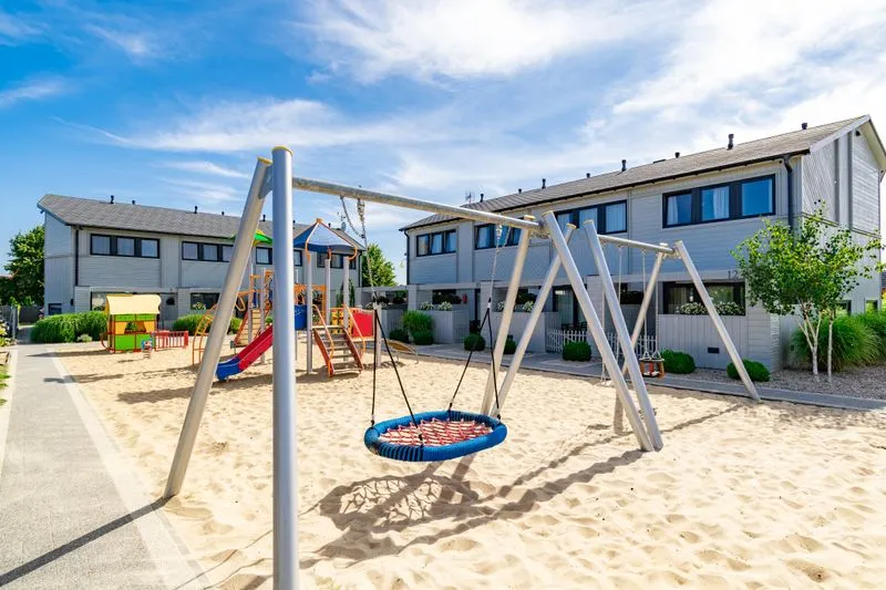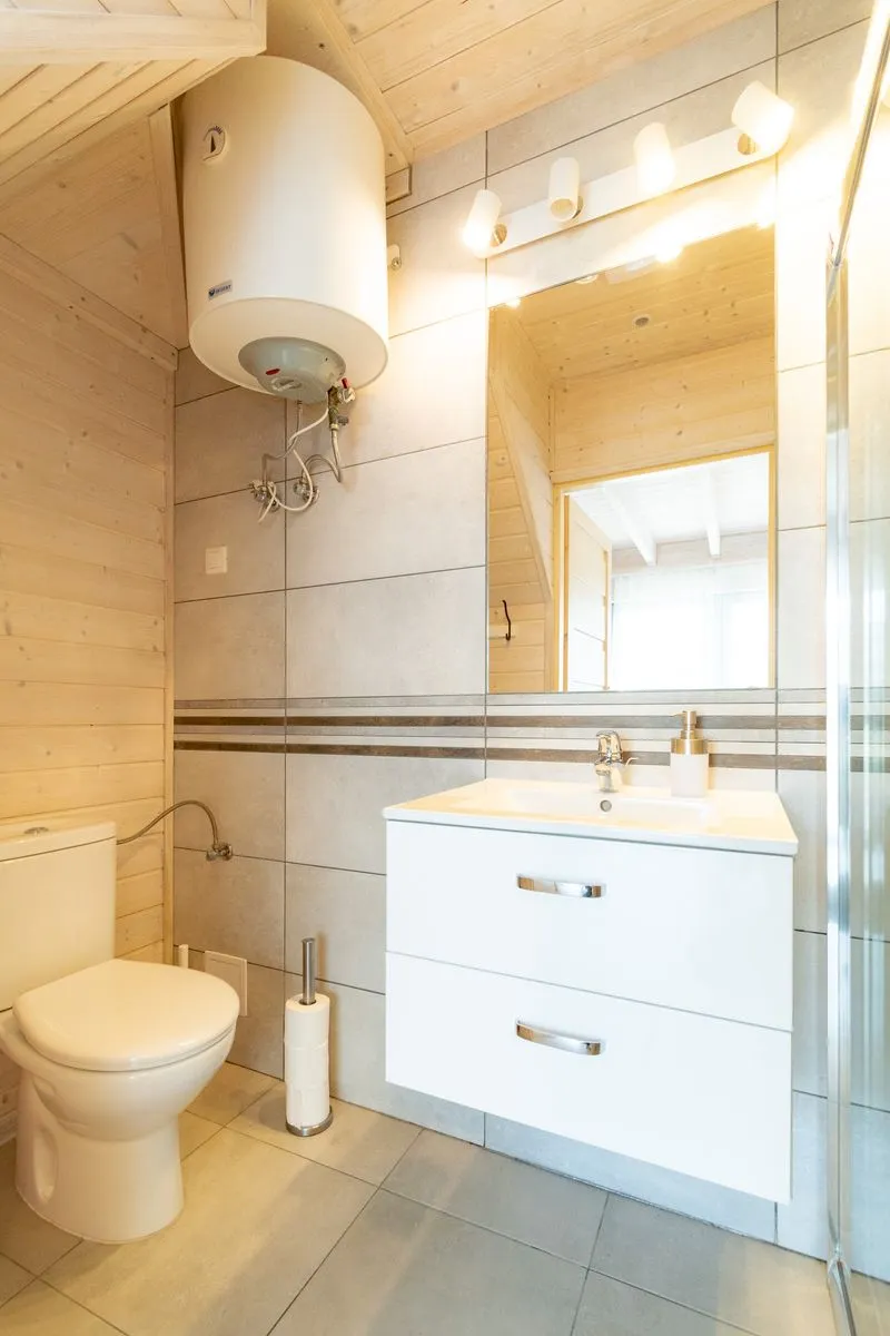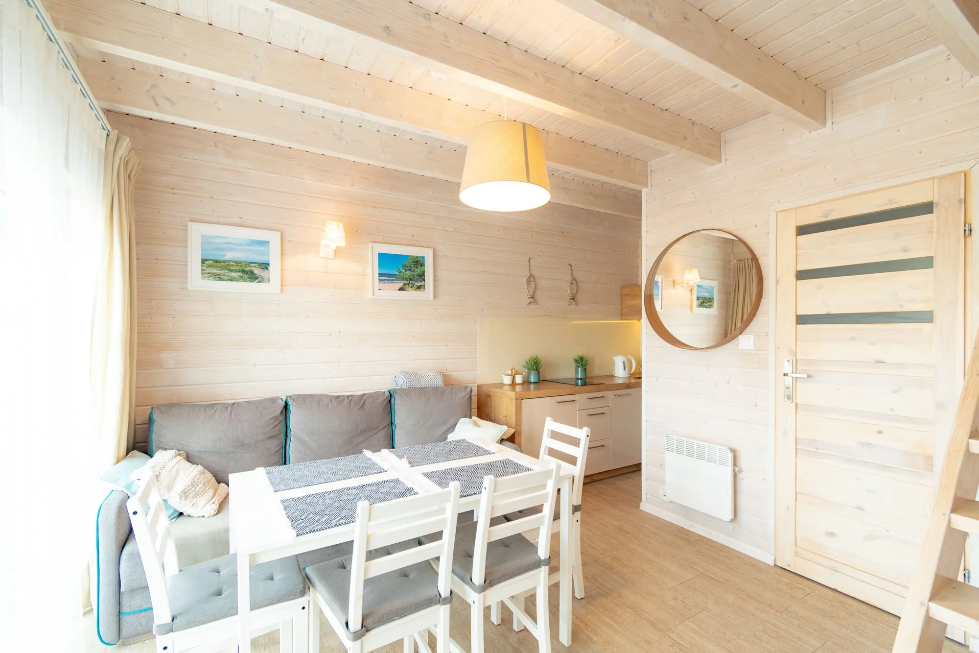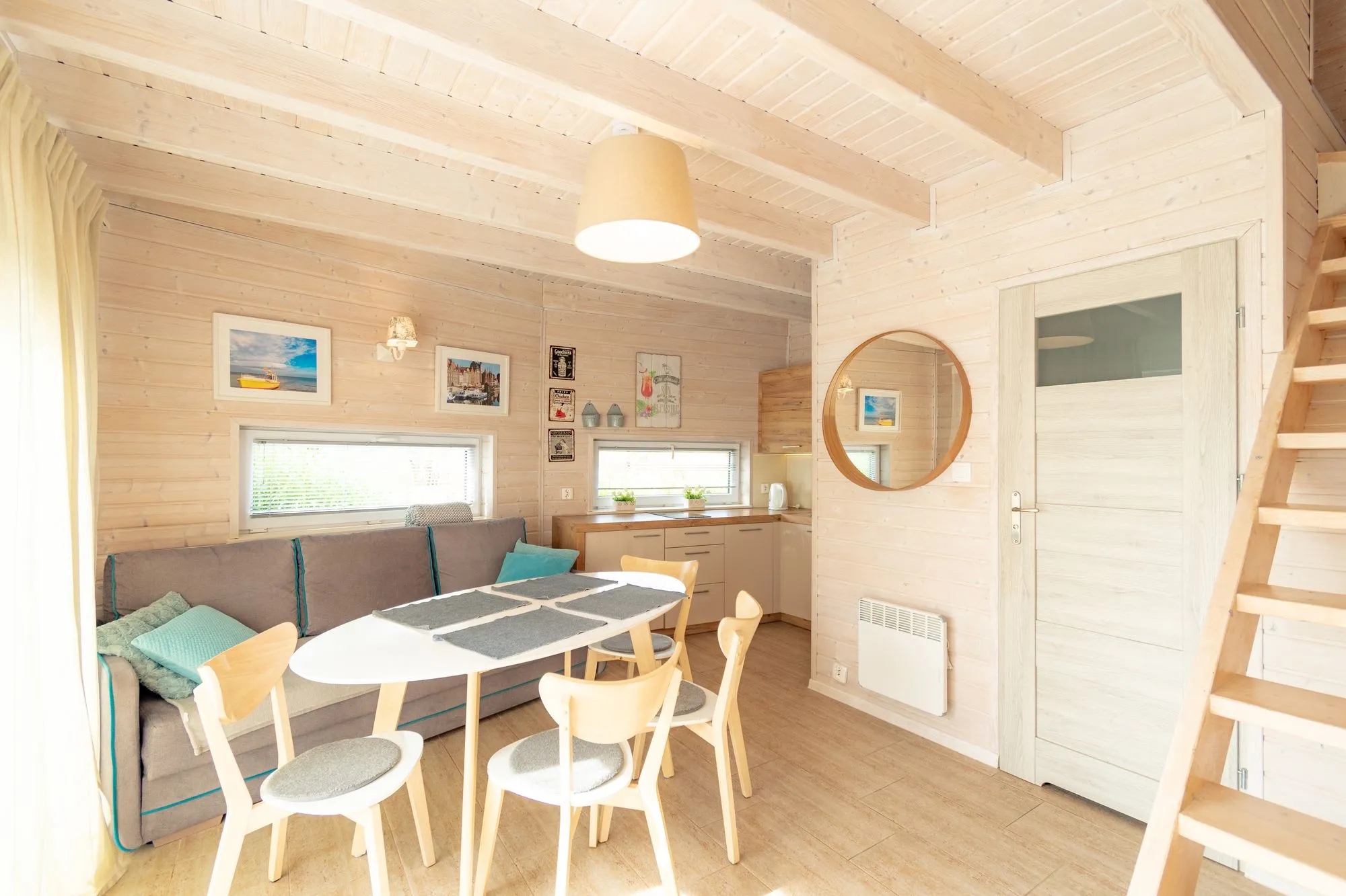Łódź Wikingów to drewniane, piętrowe domki w stylu skandynawskim, łączące minimalizm z naturalnym drewnem. Nowoczesne aranżacje i ciepłe akcenty w kolorach morskiej wody i złocistego piasku tworzą przytulne wnętrze, idealne dla osób ceniących wygodę.